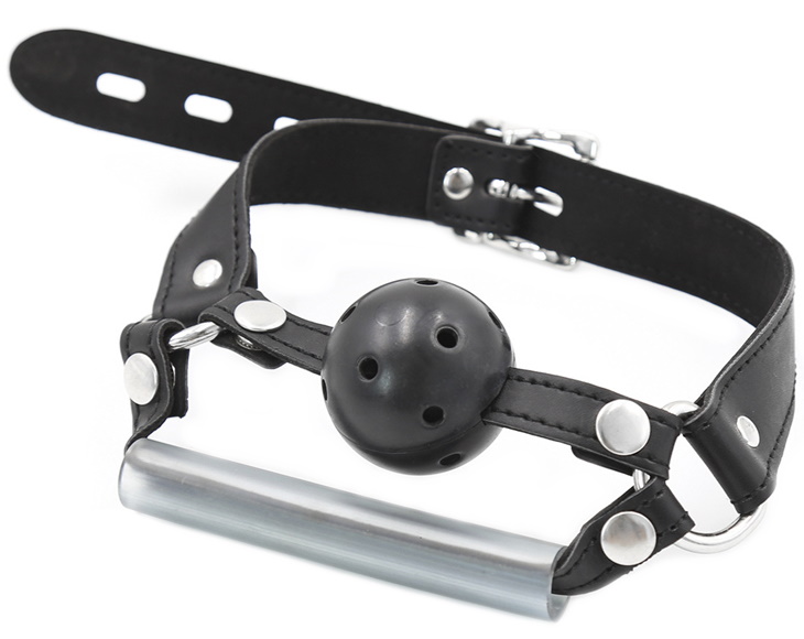 Кляп-шар выполнен из пластика и имеет дырочки для облегчения дыхания. А длинный трензель невозможно выплюнуть, он надежно фиксируется при помощи ремешка, при этом удобен для использования.