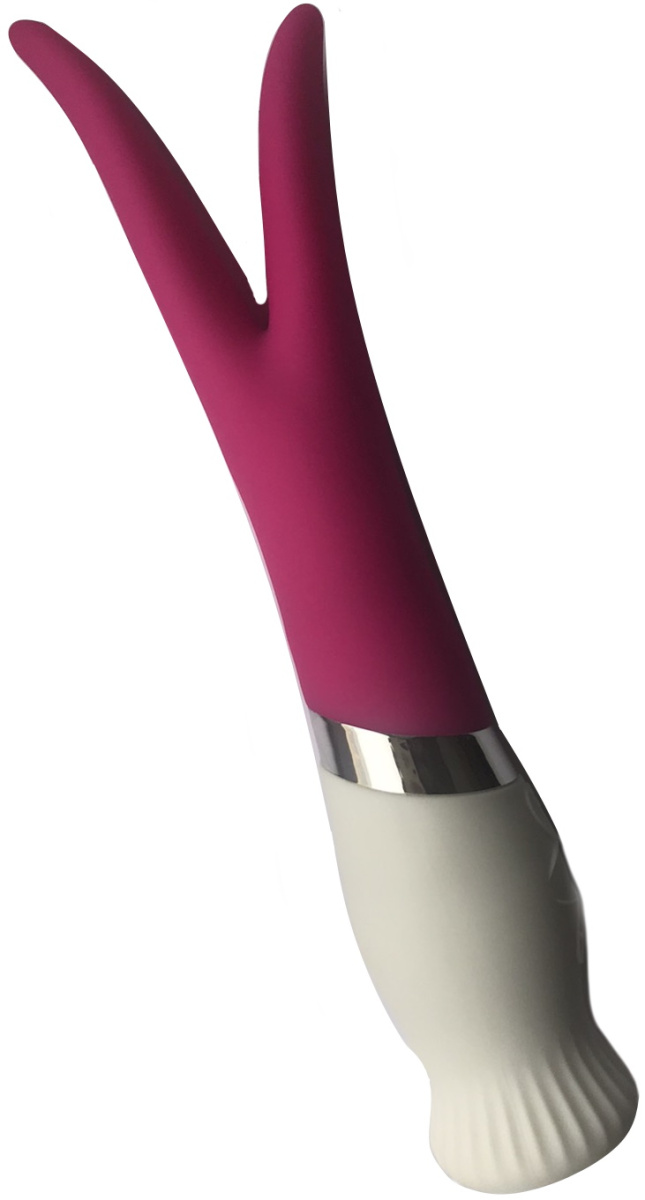 Двойной вибратор представляет собой раздвоенную сверху игрушку с очень мощным моторчиком для интенсивной стимуляции: вибрация распространяется по всему телу и лепесткам массажера чувственными волнами.