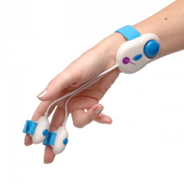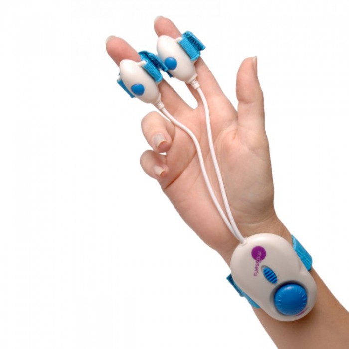 Два вибро-элемента располагается одеваются на пальцы.