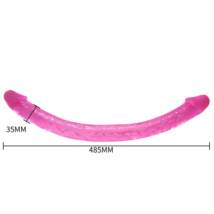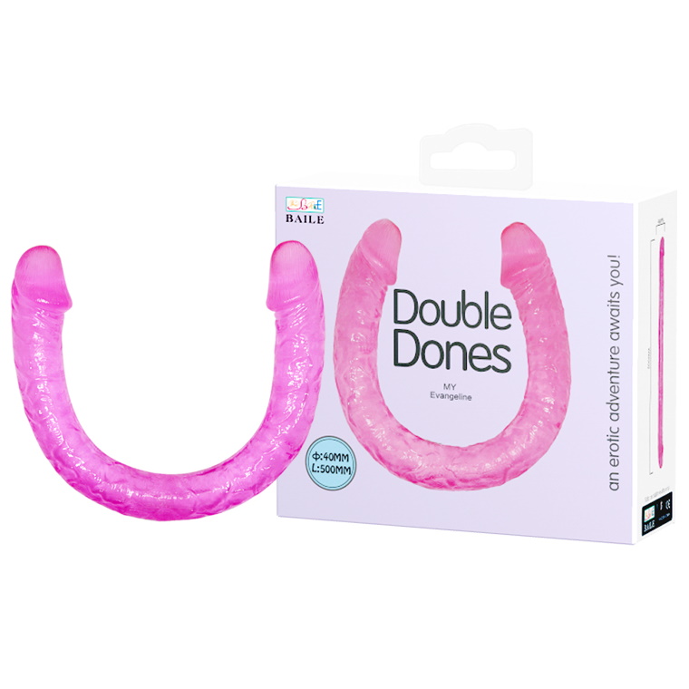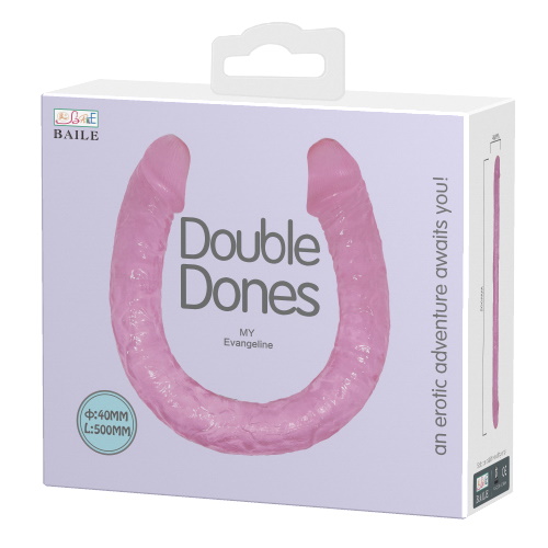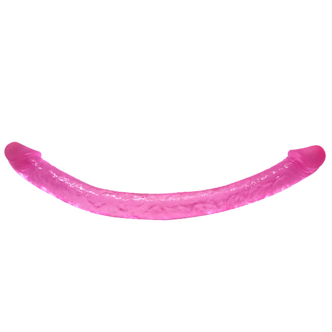 Фаллоимитатор реалистичной формы, прозрачно-розового цвета. У него есть две крупные розовые возбужденные головки, по стволу идет объемная секция вен и морщинок, для большей реалистичности.