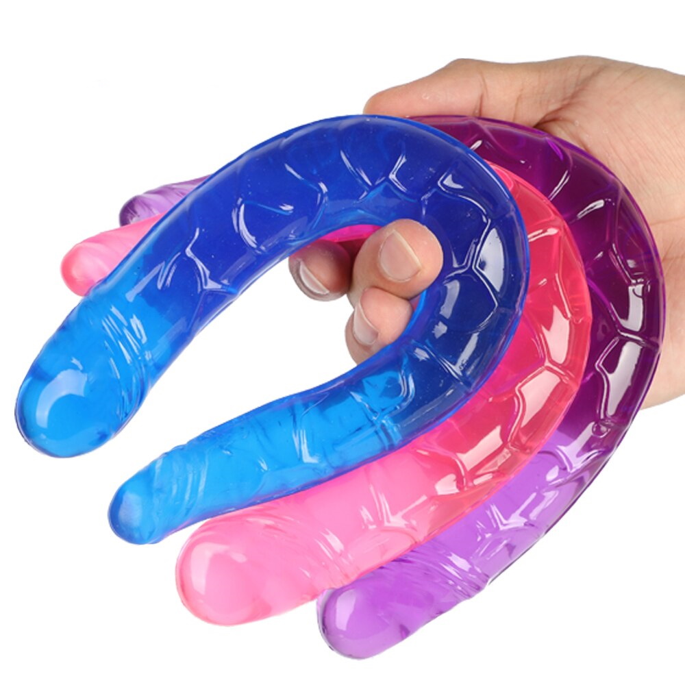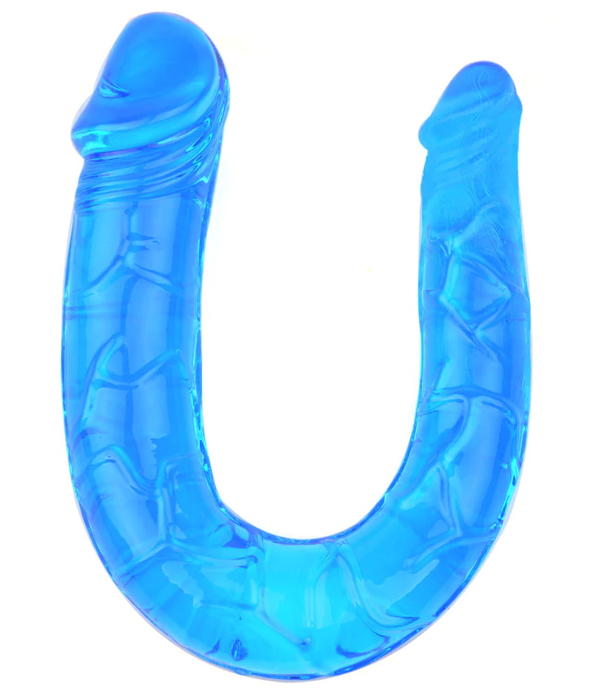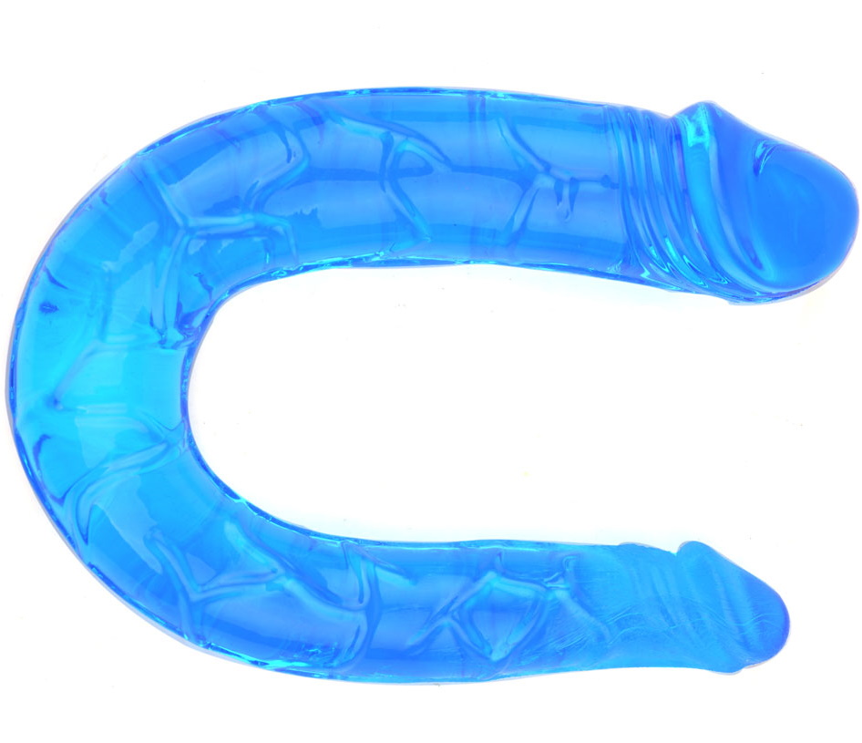 Двойной фаллоимитатор голубого цвета из мягкого и упругого геля.