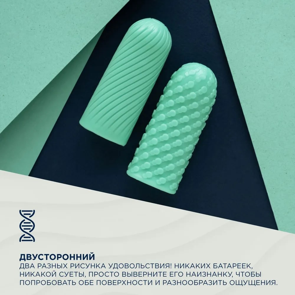 Компактный мастурбатор дает возможность насладится двумя разными рельефами. На внешней стороне расположены закрученные спиралью линии, а на внутренней - выпуклые пупырышки. Достаточно вывернуть рукав наизнанку, чтобы изменить ощущения от стимуляции.