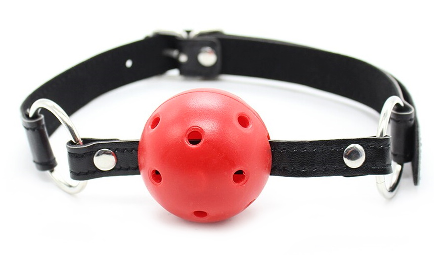 Кляп-шар имеет универсальный размер, который удобно регулируется при помощи пряжки, а специальные дырочки в шаре облегчают дыхание и обеспечивают полный комфорт.
