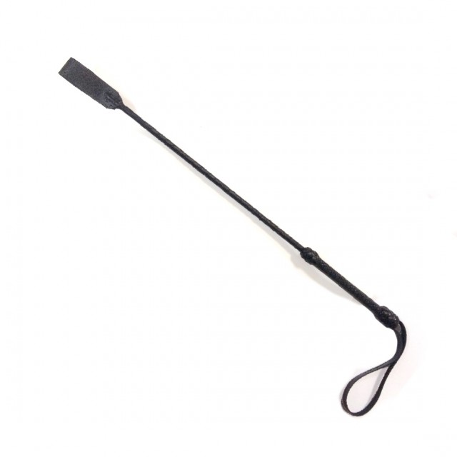 Изящный длинный стек из натуральной кожи, примечателен узкой ручкой, декорированной вышивкой в тон коже, и наконечником имеющим прямоугольную форму.