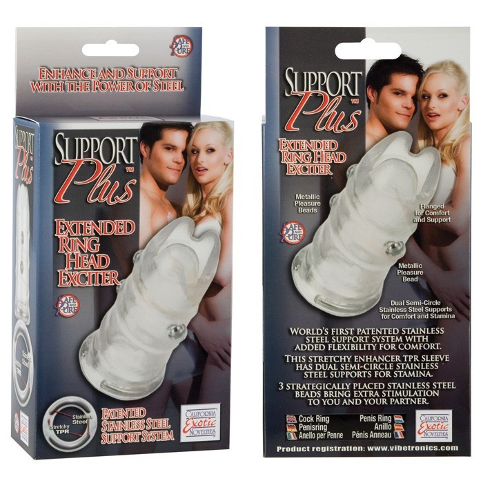Прозрачная насадка на пенис со стальными полукольцами в основании, которые помогут сохранить состояние эрекции максимально долго.