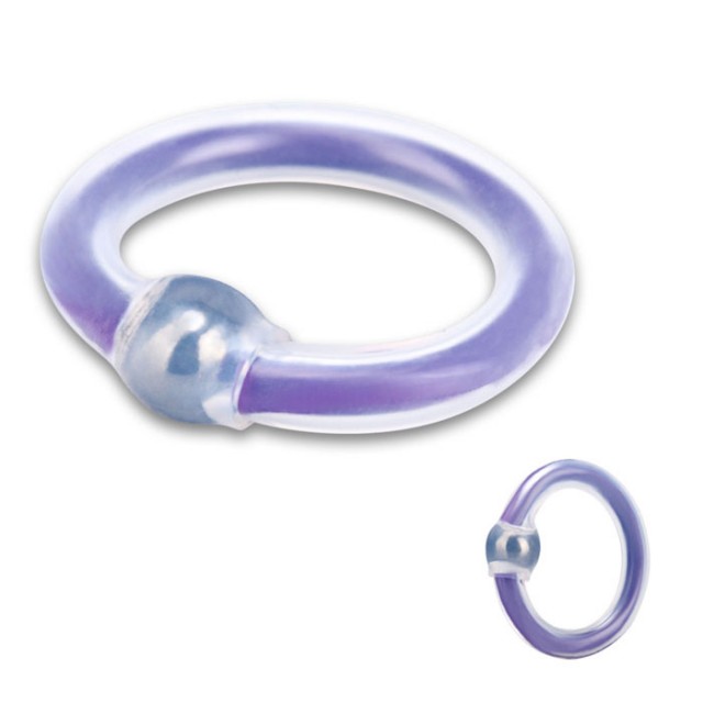 Упругое кольцо на пенис для поддержания максимального долгого времени эрекции полового члена. Яркое фиолетовое кольцо в прозрачной оболочке с металлическим шариком в мягком покрытии.