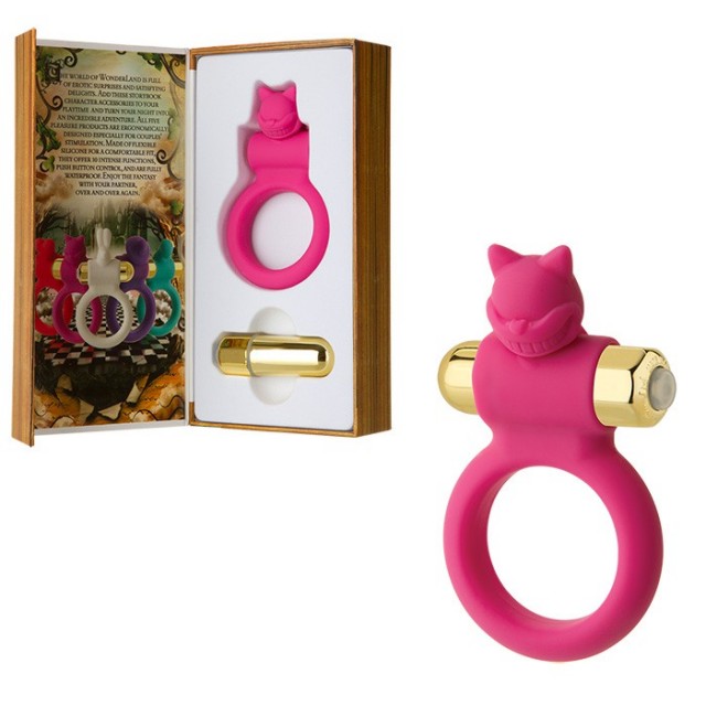Силиконовое виброкольцо на пенис со стимулятором клитора в виде чеширского кота из ограниченной коллекции Doc Johnson "Страна чудес". Качественный силикон розового цвета приятен на ощупь, отлично тянется и абсолютно гипоаллергенен. Съемный вибростимулятор обладает 10 различными функциями вибрации. Начальный диаметр кольца составляет 3,6 см. Длина вибропули составляет 6 см.