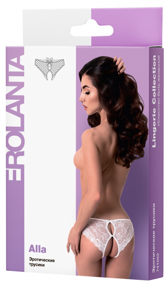 Эротические трусики Erolanta Alla кружевные, эластичные, с фигурными вырезами, с атласными бантиками, со свободным кружевным краем.