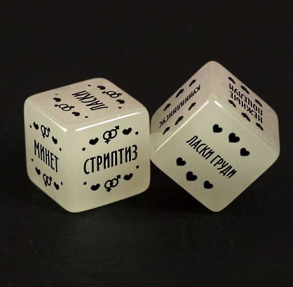А ещё есть два кубика, которые можно использовать как отдельную игру. Возьмите каждый по кубику, по очереди бросайте и выполняйте то, что на них написано.
