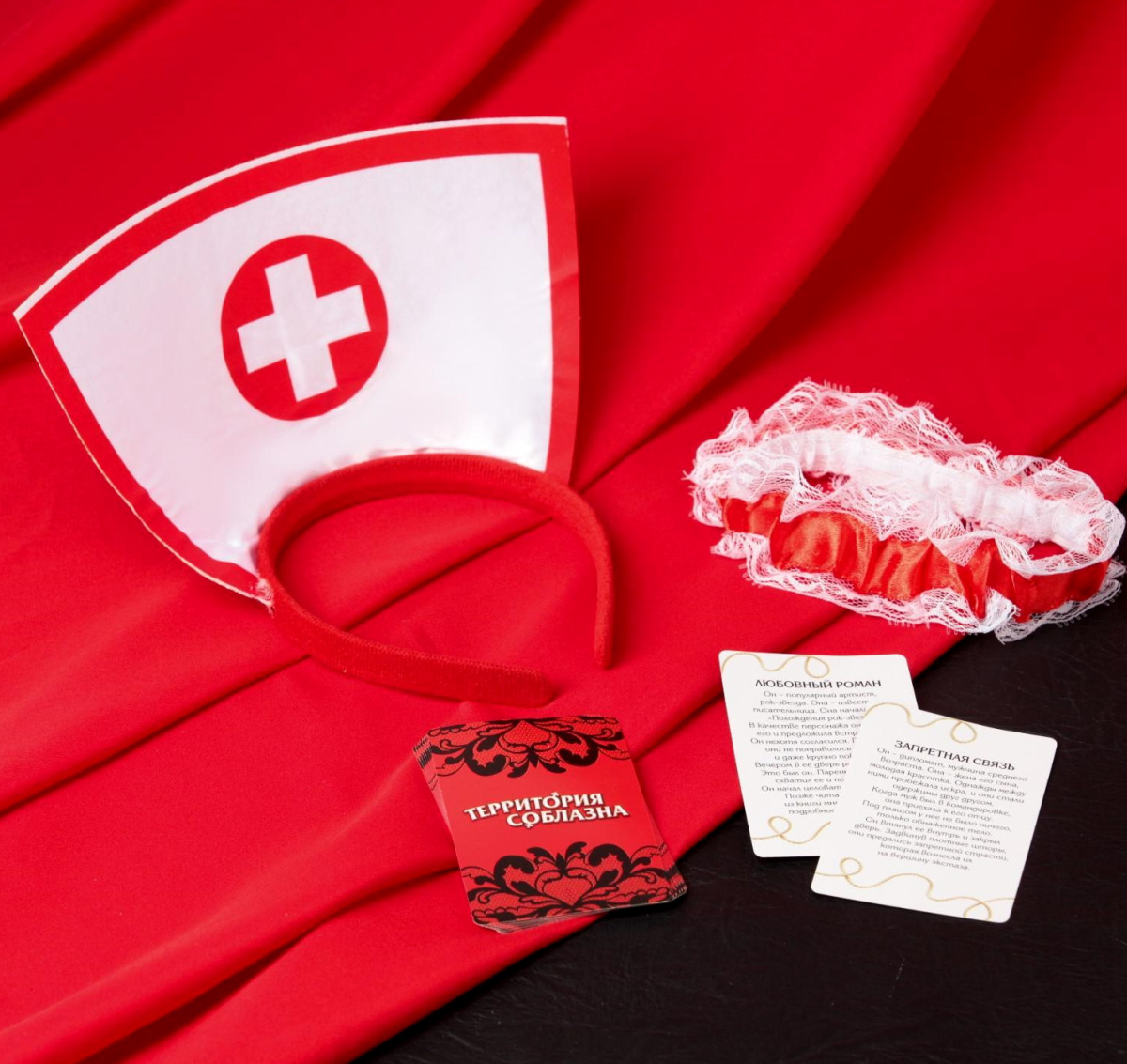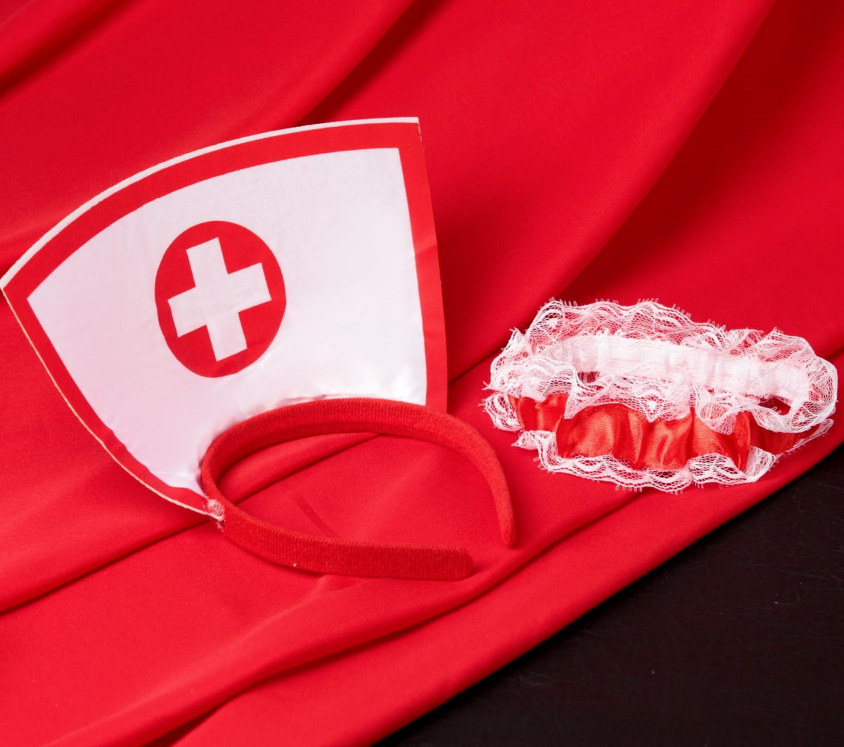 Партнёрша может использовать ободок медсестры и подвязку, чтобы добавить образу перчинки.