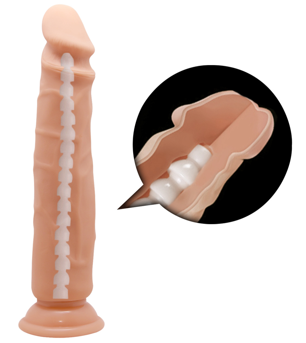 Рельеф из вен и небольших пупырышек ближе к головке фаллоса предназначены для более интенсивной внутренней стимуляции.