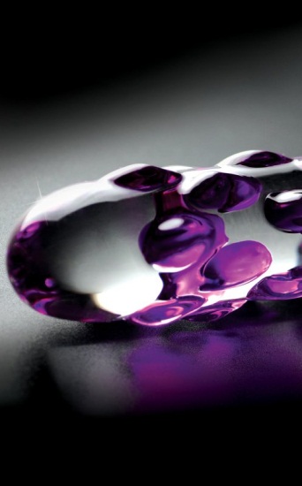 Фаллоимитатор из прозрачного стекла с розовыми точками.