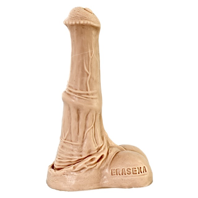 Лошадиный член телесного цвета, с массивной мошонкой.