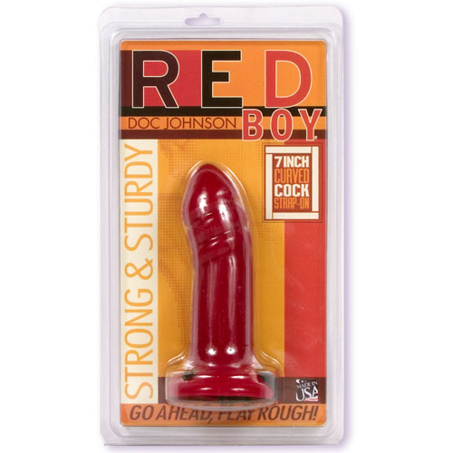 Фаллопротез из красного ПВХ длиной 16 см и диаметром 4,5 см.
