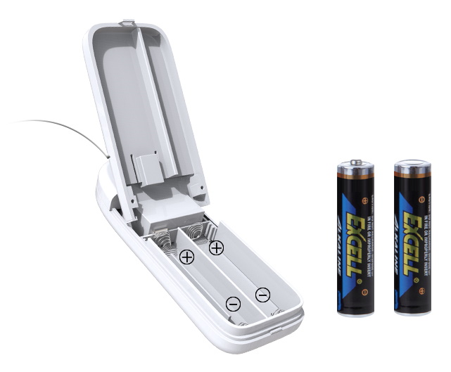 Работает от 2 батареек типа АА (в комплект НЕ входят!).