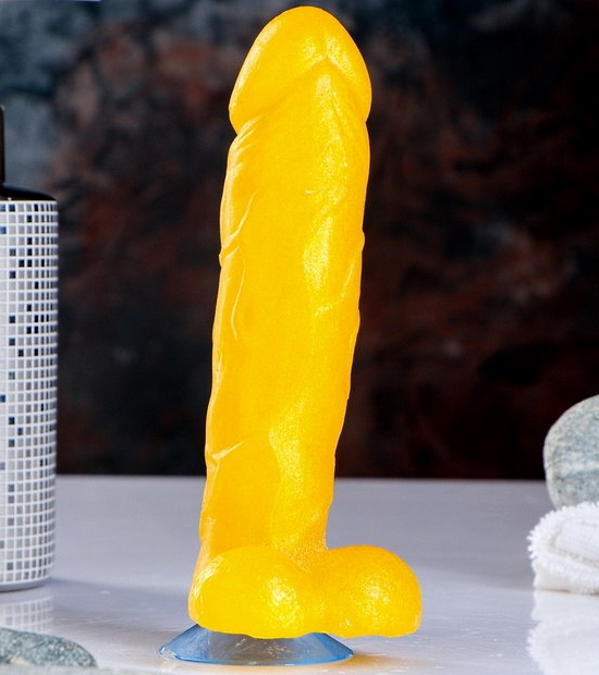 Эротическое мыло, выполненное в форме мужского члена со всеми анатомическими подробностями.