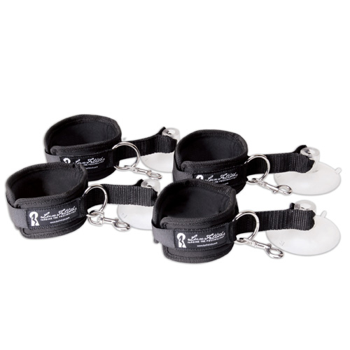 Наручники и фиксаторы для ног можно соединять между собой не только с помощью металлических карабинов, но и с помощью прочных присосок.