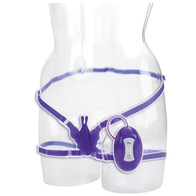 Фиолетовая силиконовая бабочка-стимулятор клитора на силиконовых ремешках, крепящихся к телу как трусики. Игрушка имеет 7 функций интенсивной вибрации, пульсации и эскалации, которые управляются удобным выносным пультом с подсветкой. Дизайн разработан так, чтобы игрушку можно было использовать во время занятий любовью. Благодаря чистейшему высококачественному силикону, можно быть уверенной, что нежная кожа не будет повреждена или раздражена. Съемные силиконовые ремешки регулируются и отлично тянутся.