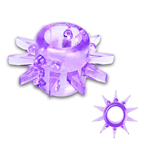 Фиолетовое тянущееся кольцо на пенис из мягкого и упругого материала. Кольцо одевается на основание пениса и выступающими шипиками стимулирует клитор девушки и мошонку мужчины. Самый простой и понятный аксессуар для взрослых игр.