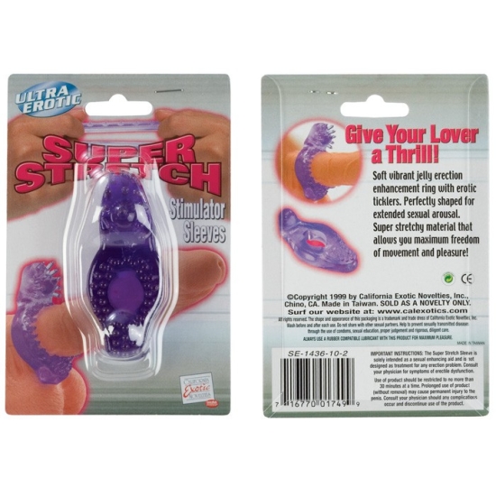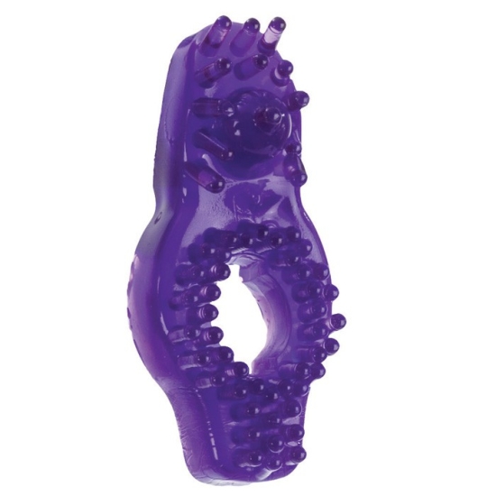 Фиолетовое хорошо тянущееся кольцо на основание пениса. Позволяет продлить эрекцию, а своими силиконовыми мягкими шипами стимулирует клитор и вход во влагалище партнерши при половом акте.