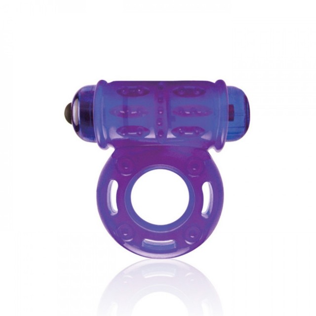 Вибро-кольцо на пенис фиолетового цвета с мощной вибрацией и выпуклыми элементами для стимуляции клитора.