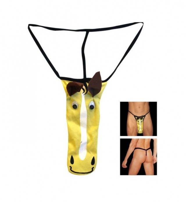 Забавные G-стринги с плюшевым кармашком для пениса в виде головы лошади.