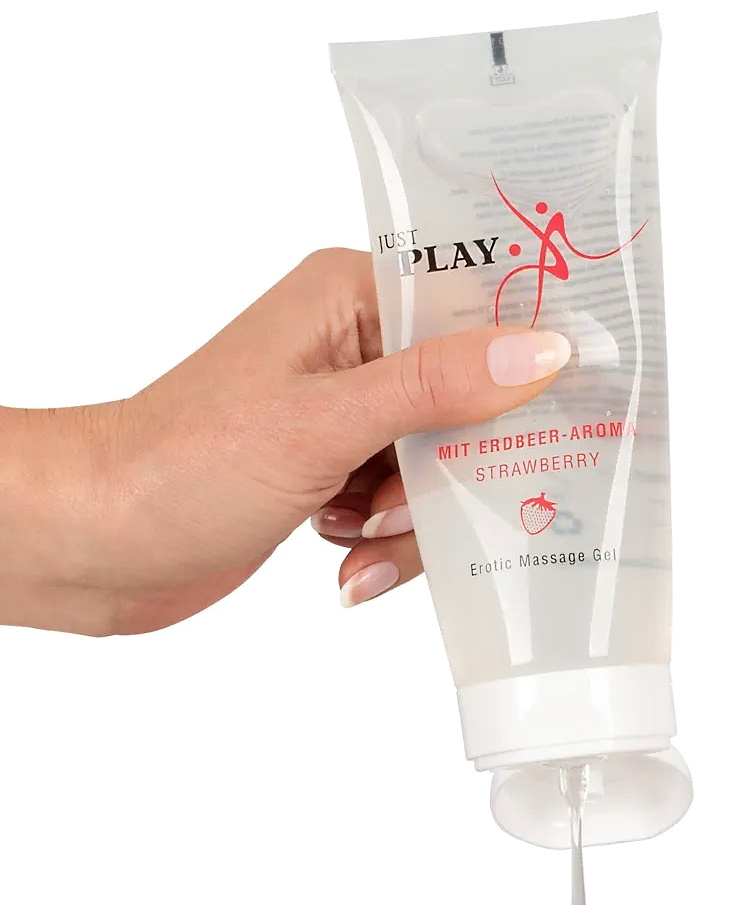 Кроме того, благодаря составу, Just Play Strawberry не оставляет жирной пленки на коже или одежде и легко стирается, не оставляя следов.