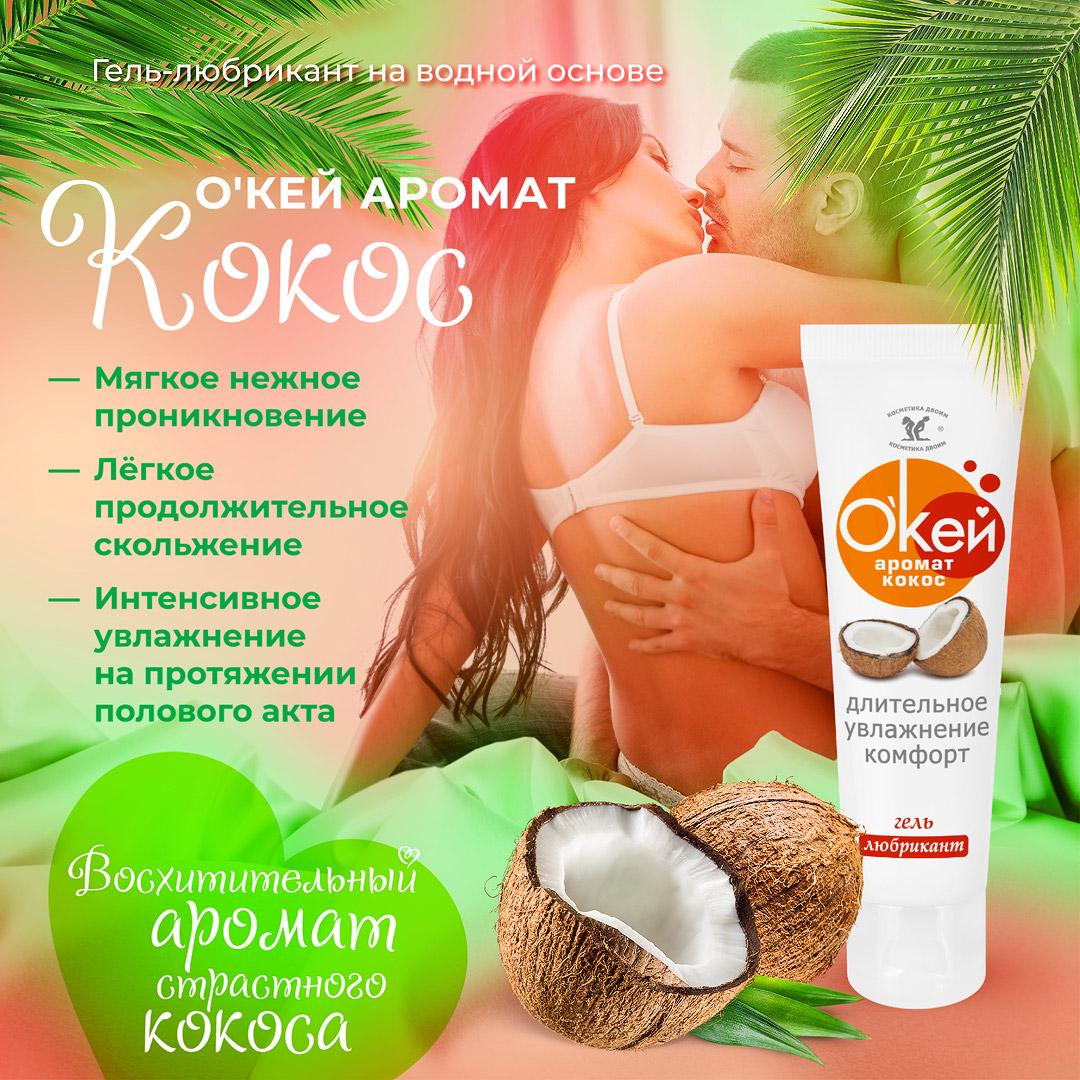 Гель любрикант О'кей с ароматом кокоса позволяет дополнить удовольствие от интимной близости любимым ароматом!