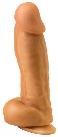Изделие имеет реалистичный внешний вид: текстурированная выпуклыми венами поверхность, ярко выраженная головка и крупная мошонка в целом выглядят в точности, как настоящий пенис мужчины.