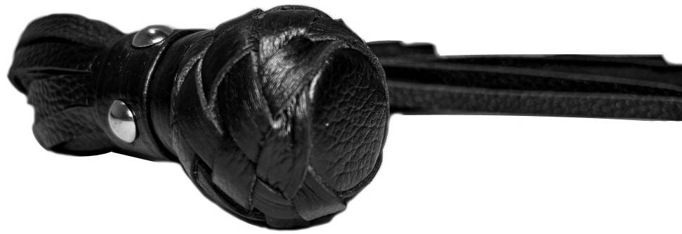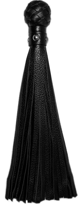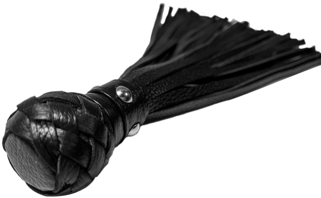 Необычная плеть выполнена из натуральной кожи черного цвета, что позволит шлепать вашего партнера так сильно, как вам захочется - не ограничивайте себя во власти или получайте удовольствие от сладких ограничений!Мини-рукоятка декорирована плетением и металлической фурнитурой, очень комфортно ложится в руку!