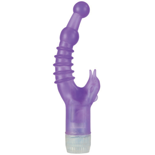 Мощный ребристый вибромассажер сиреневого цвета из термопластичной резины без запаха. Массажер с хребтом, хорошо сохраняющим форму, податливый, с рельефным стволом, резонирующим по всей длине массажера. Длина основного массажера 14 см, длина дельфинчика - 3 см. Дельфинчик будет массировать клитор у женщины, либо если массажер используется мужчиной то мошонку. Работает от двух пальчиковых батареек типа АА.