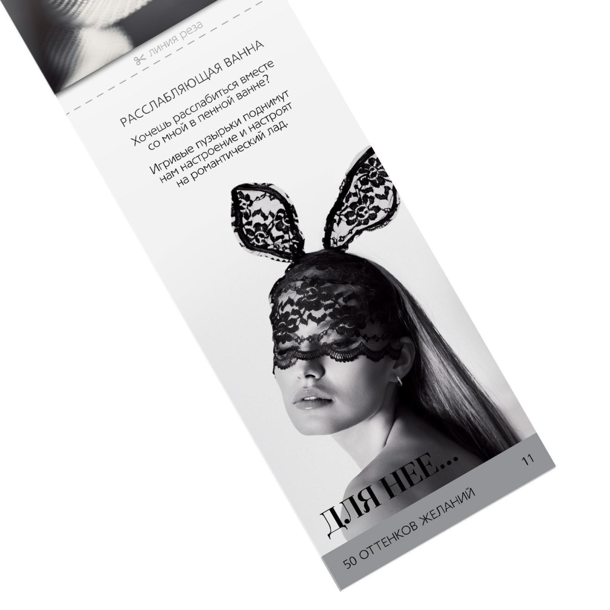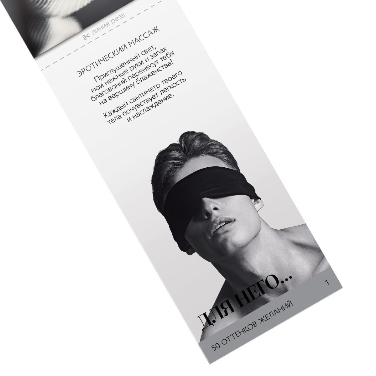Выбирайте желания на любой вкус: от романтических прелюдий до горячих игр. Отрывайте купон и вручайте второй половинке, когда вас настигнет страстное желание. Подарите друг другу неземное удовольствие!