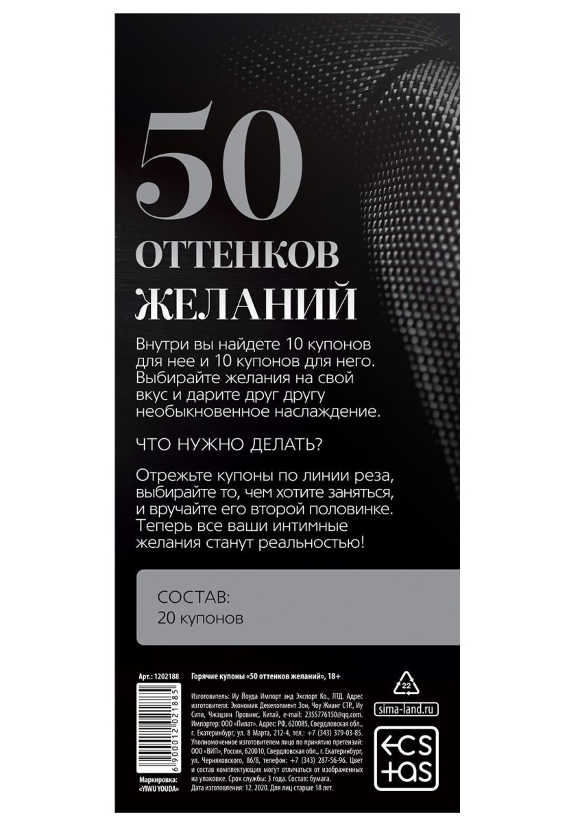 Горячие купоны «50 оттенков желаний» разнообразят ваши будни - добавьте в сексуальную жизнь перца.