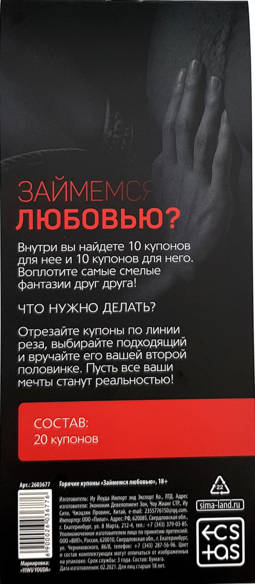 Мечтаете удивить своего партнёра, но не знаете, как? Тогда горячие купоны «Займёмся любовью» непременно придутся по вкусу вам и вашей половинке.