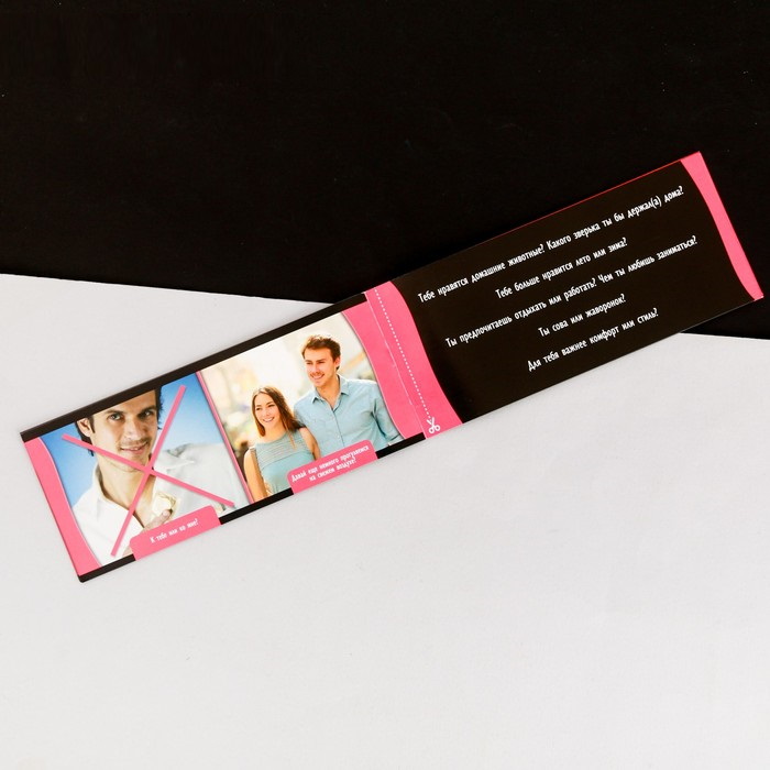 Смотрите на картинки и выбирайте верные варианты действий! Ну а чтобы лучше узнать друг друга, вырежьте листочки с вопросами и задайте их своей спутнице или спутнику на вашем первом свидании.