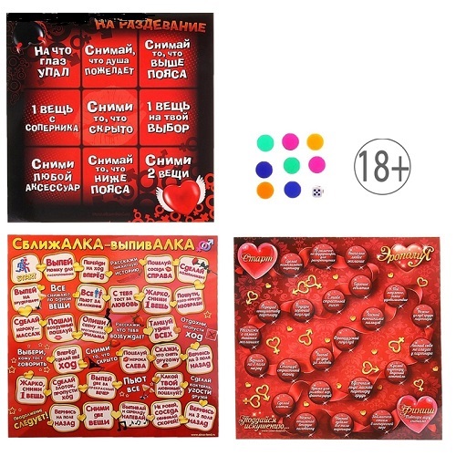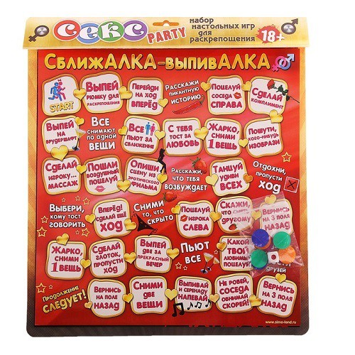 «Сближалка-выпивалка» - это микс алкогольных и пикантных заданий. Играть очень просто – кидаете кубик, ходите фишками и выполняете задания, которые выпадают.