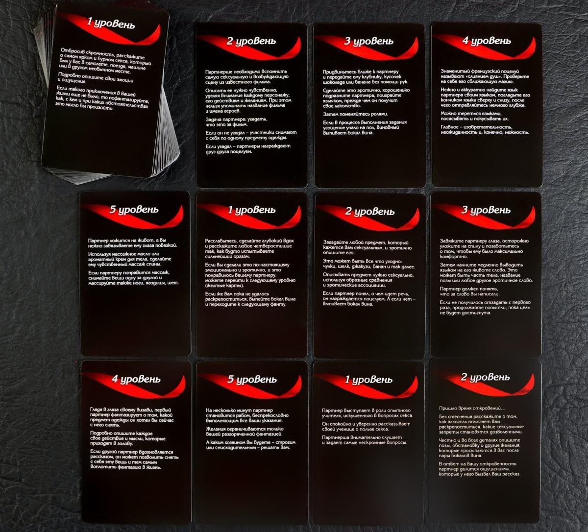 Начинайте с карточек первого уровня, а затем по очереди вытягивайте по одной, читайте вслух и выполняйте задание. Когда первая колода закончиться,