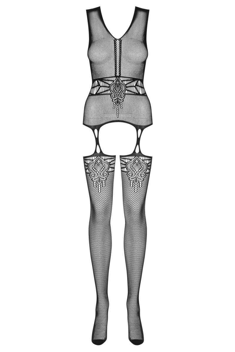 Детали: топ в сочетании с чулками, тонкий вырез с соблазнительным вертикальным узором снизу, необычная, эффектная имитация пояса на талии - подчеркнутые формы, оригинальный мотив украшает верх и чулки - интригующий дизайн, прочное плетение с идеальным узором - решение 3SKnit, приятная на ощупь и эластичная ткань.