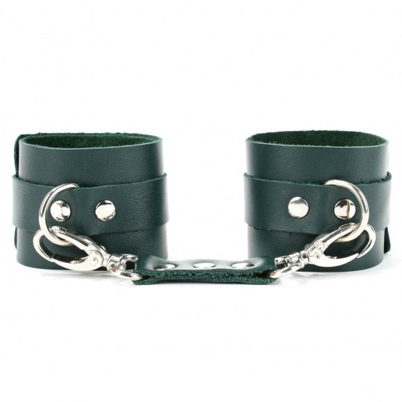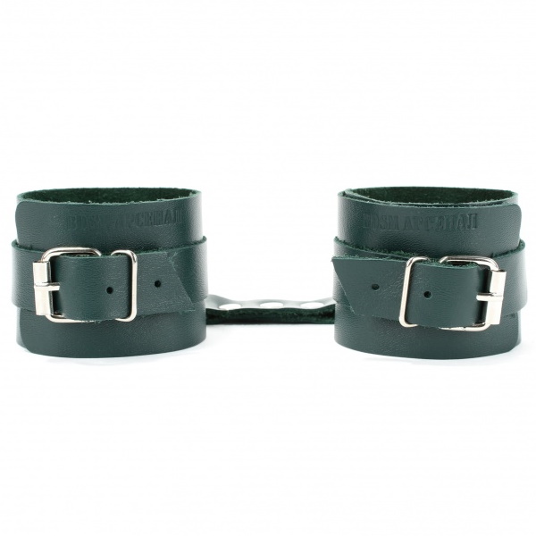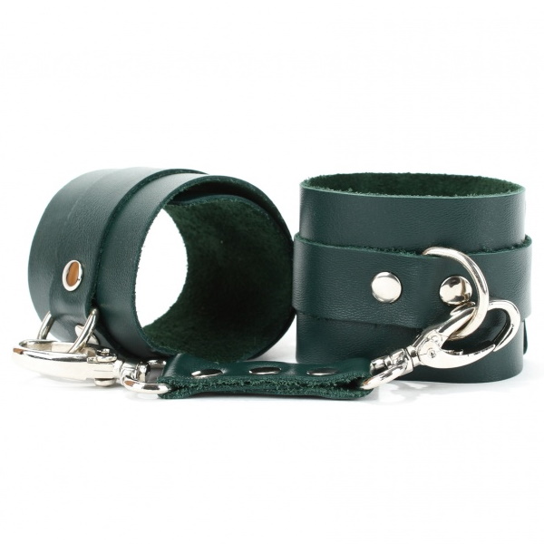 Металлическая пряжка крепко удерживает в подчинении, кожаное соединение на карабинах фиксирует наручники вместе, а ремни позволяю выбрать нужный размер.
