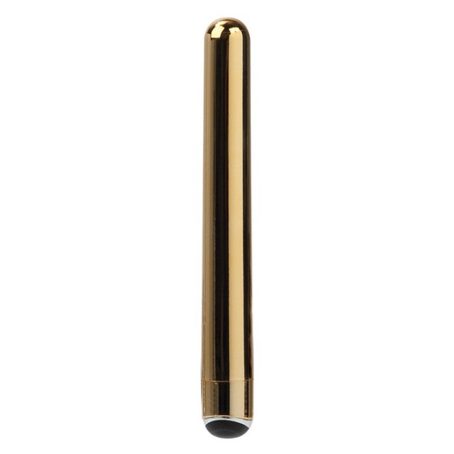 Красивый ровный вибратор цвета идеального золота с 5 функциями вибрации, пульсации и эскалации.