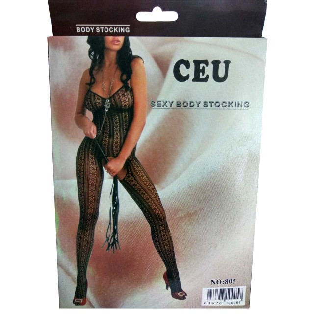 Кэтсьюит черный с узором с прорезью.