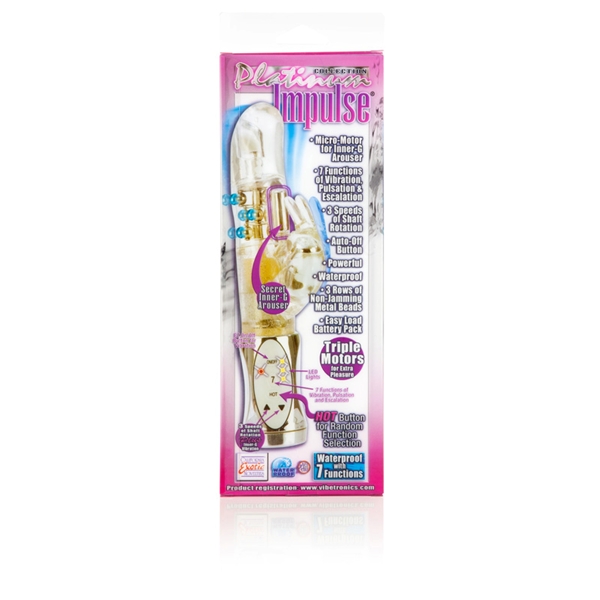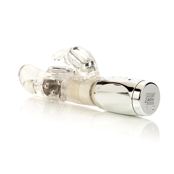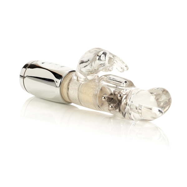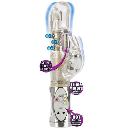 Многофункциональный вибратор с загнутой головкой, 3 рядами металлических ротационных шариков, вибро-пулей на стволе вибратора и клиторальным стимулятором-кроликом.