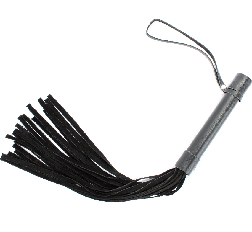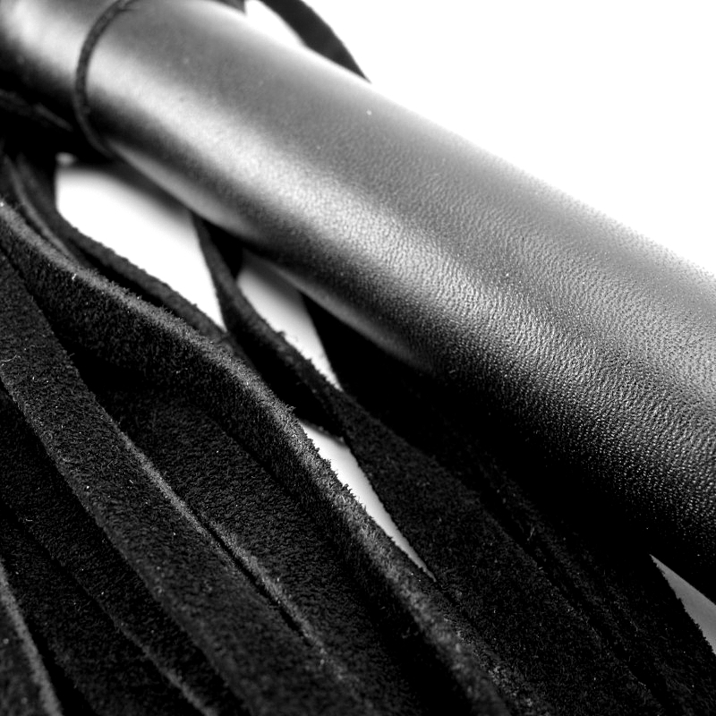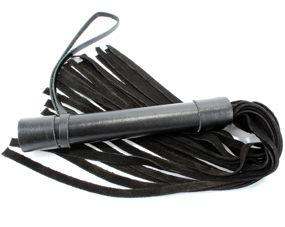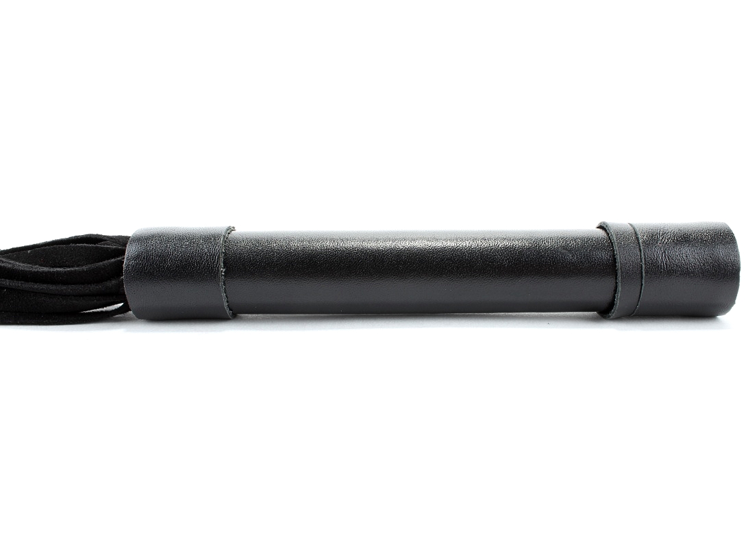 Рукоятка выполнена из натуральной гладкой кожи черного цвета. Хвосты плети (25 штук) изготовлены из нежной натуральной замши, благодаря чему плеть отлично подойдет как для порки, так и для нежных поглаживаний.