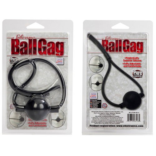 Комфортный кляп, сделанный из черного силикона, с диаметром шара 4 см.