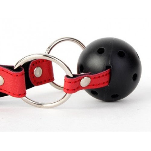 Кляп с черным пластиковым шариком и отверстиями для облегченного дыхания, застегивается на ремешок из искусственной кожи, что не позволит Вашему партнеру вытолкнуть шарик изо рта и издать лишних звуков.