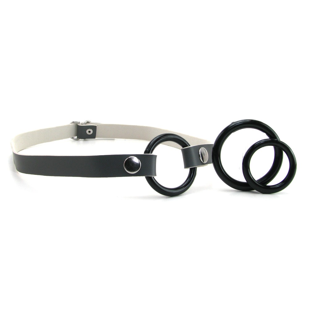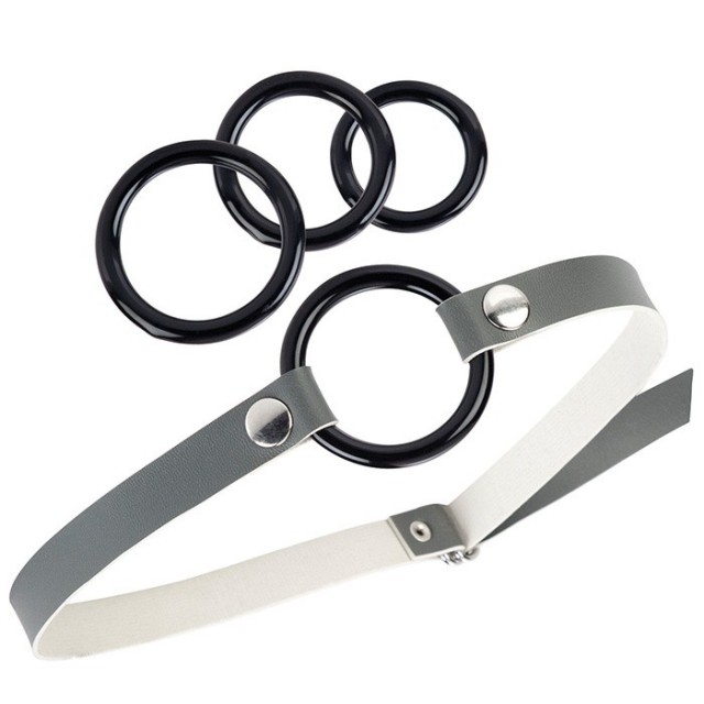 Универсальный О-образный кляп с комплектом съемных колец-кляпов разного диаметра.