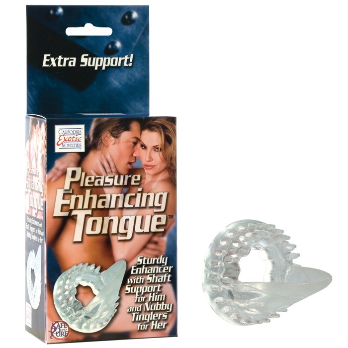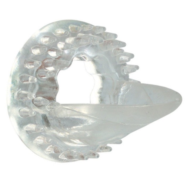 Прозрачное кольцо из силикона с мягкими шипами и большим язычком, который может выполнять роль эректора, также дополнительно расширяя пенис.