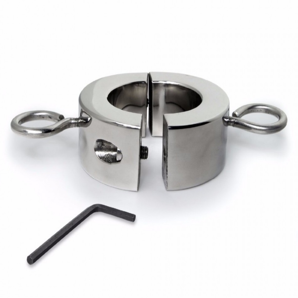 Для подобного рода тренировок используется болстретчер (дословно растяжитель мошонки). Кольцо состоит из двух половин толщиной 36 мм, которые соединяются двумя двухсантиметровыми болтами. Петли по бокам вкручиваются в кольцо и служат держателями для грузиков.