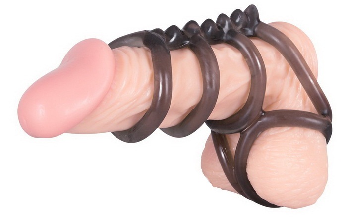Кольцо-насадка для пениса и мошонки состоит из 6 колец , которые соединены хребтом!