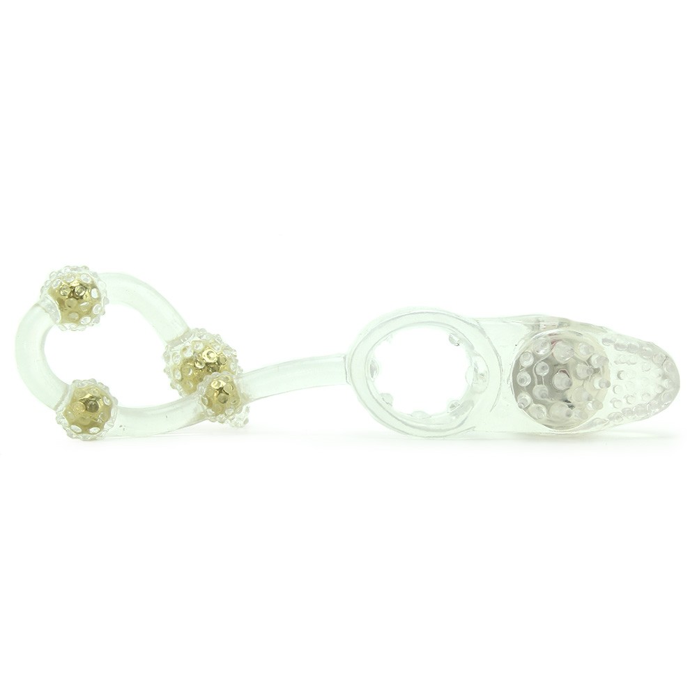 Эрекционное кольцо с щеточкой для стимуляции клитора партнерши со встроенным вибро-элементом. Широкий ободок кольца плотно облегает основание пениса.